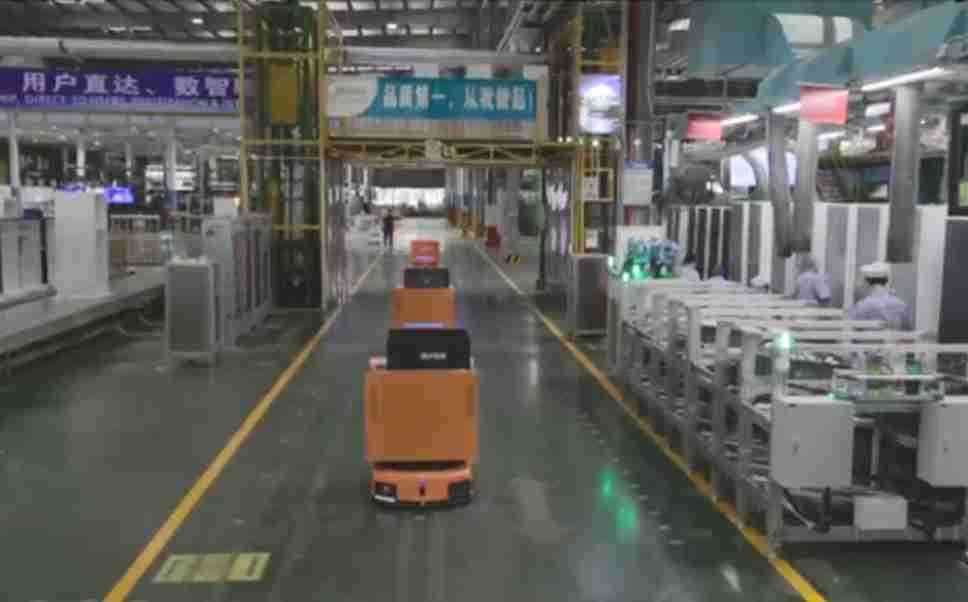 为车载冰箱物流配送打造的智能解决方案,,,包含产中物流通过潜伏举升AMR搬运至线边,,产后成品物流智能仓储,,,,流程包含产中物流智能齐套入库,,,线边安灯叫料AMR智能配送至线边,,成品入库、、出库,,通过无人堆高车机器人,,,智能仓储管理替代人工作业管理,,,实现更高存储、、更高效率、、更具柔性化的解决方案。。